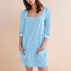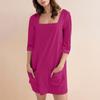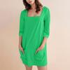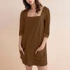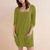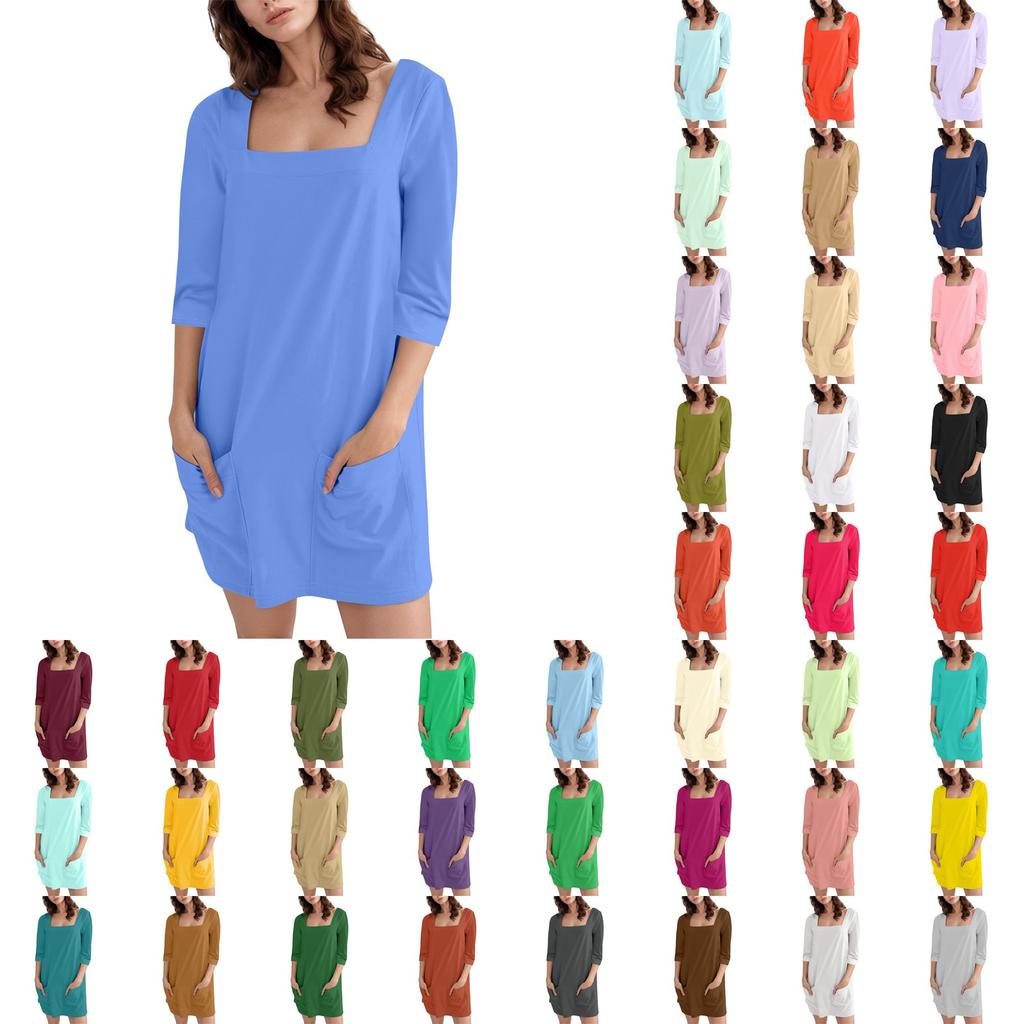 Женское модное повседневное однотонное короткое платье с квадратным вырезом и рукавом 3/4 — купить товар онлайн с бесплатной доставкой до всему миру!