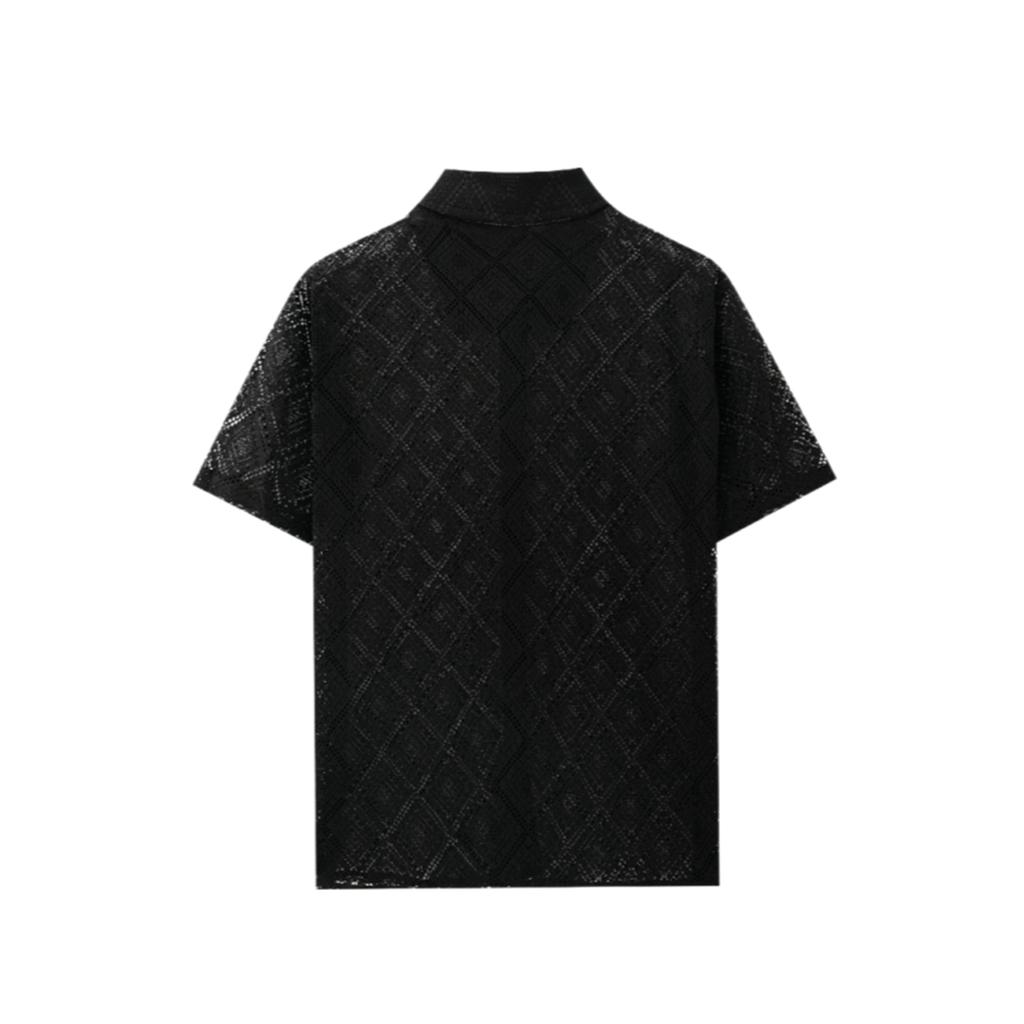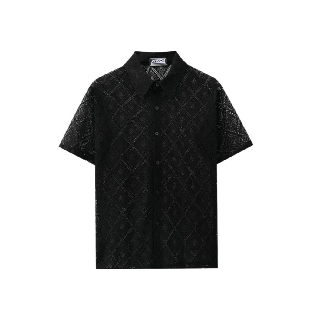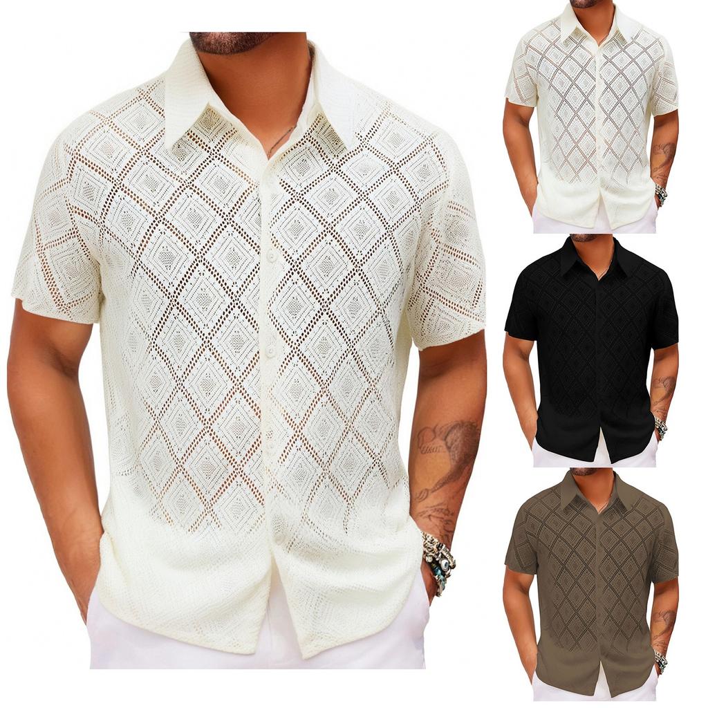 Мужская летняя сексуальная однотонная крутая дышащая рубашка, летняя повседневная трикотажная рубашка с короткими рукавами и лацканами