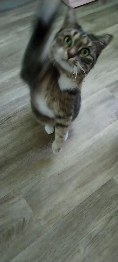 Кошка в восторге от мяты. Готова сделать что угодно, лишь бы я ей дала лакомство.