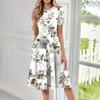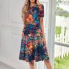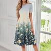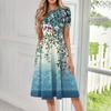 Женское свободное повседневное и модное платье с круглым вырезом и короткими рукавами, средней длины с принтом