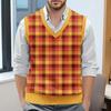 Мужской жилет без рукавов с клетчатым принтом и V-образным вырезом, вязаный джемпер