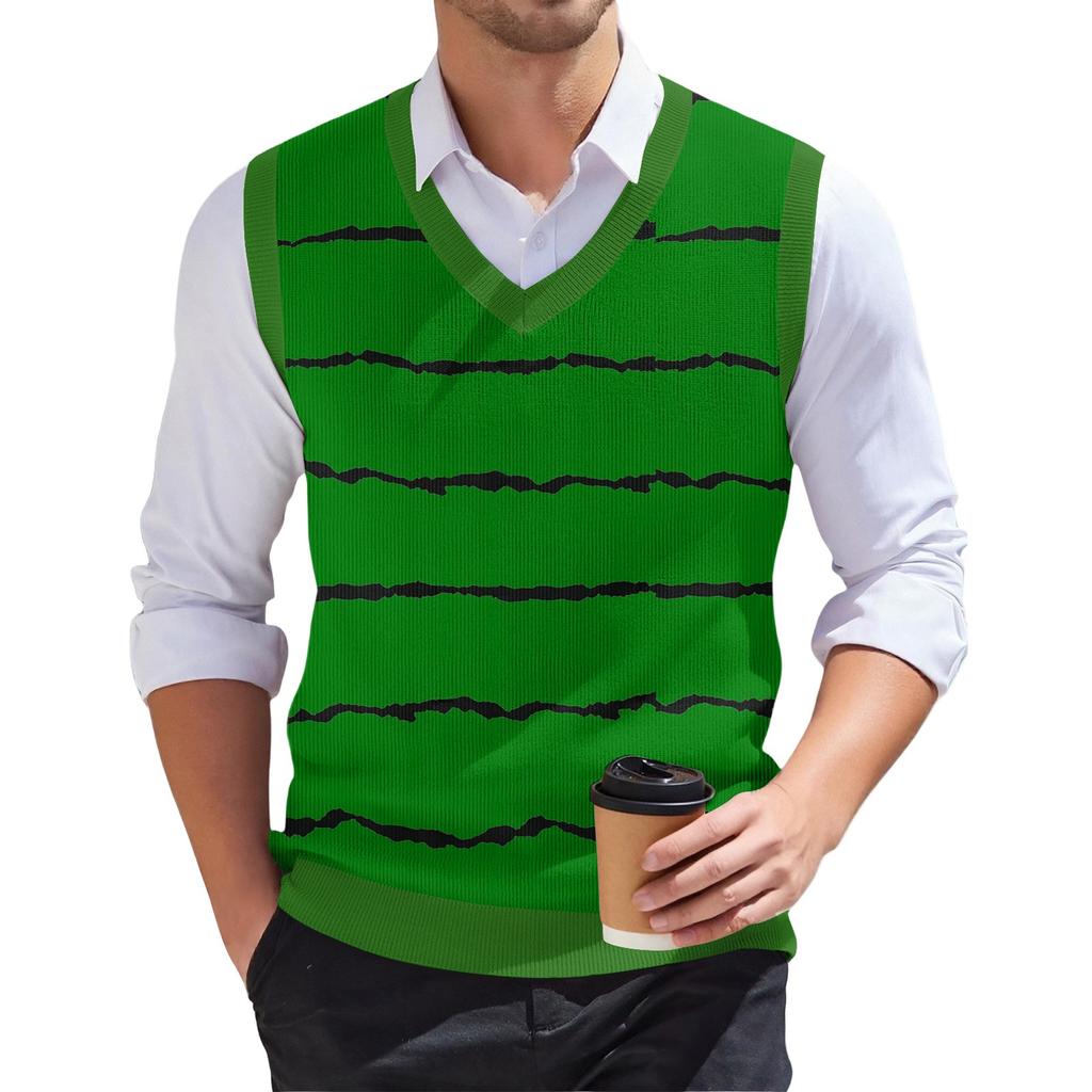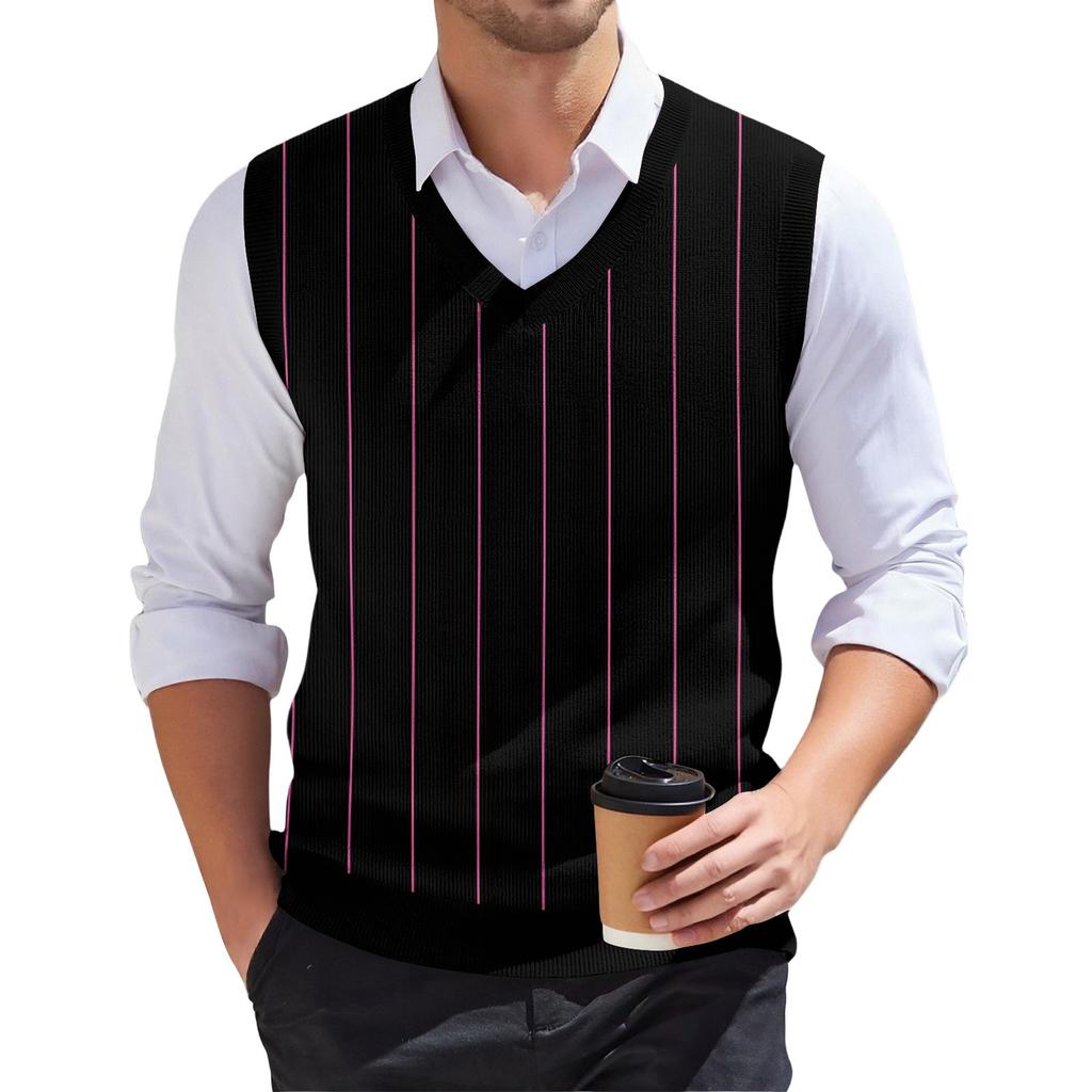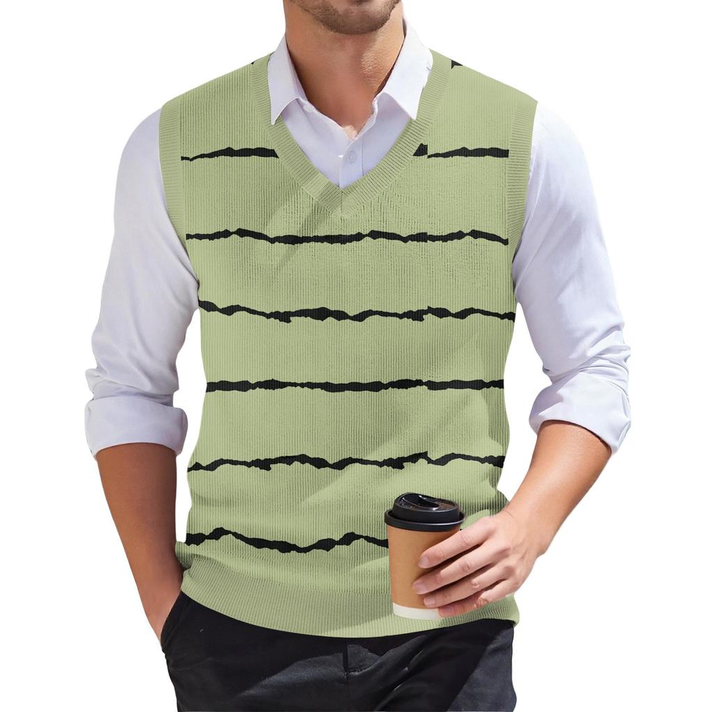 Мужской модный принтованный V-образный вырез без рукавов трикотажный пуловер