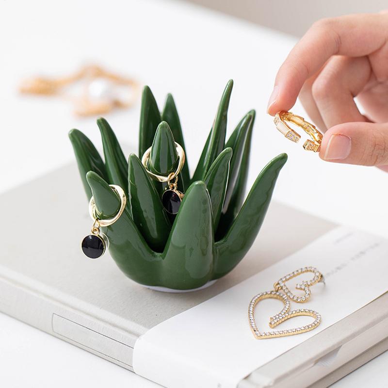 Керамическая подставка для колец с алоэ, поднос для украшений, блюдо для колец в виде кактуса, креативный органайзер для мелочей, тарелка для браслетов, ожерелий, серег