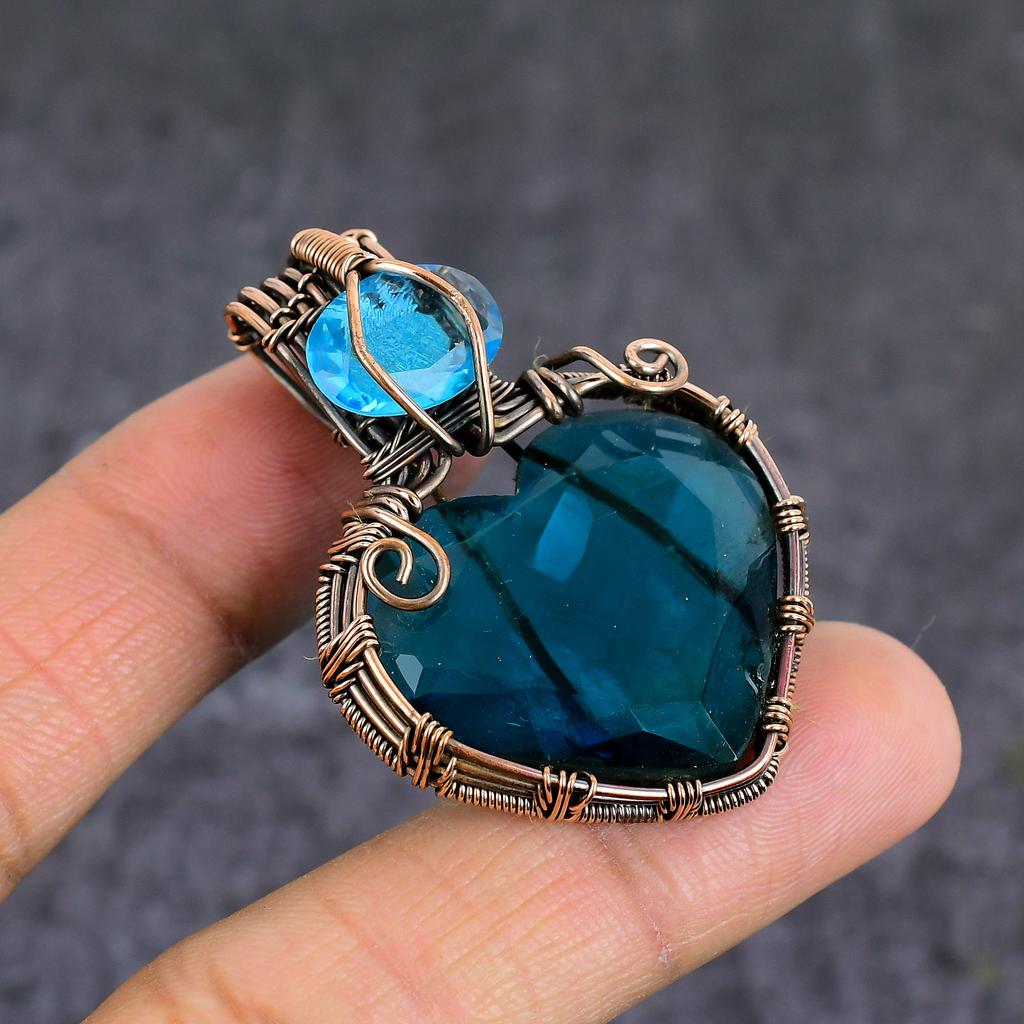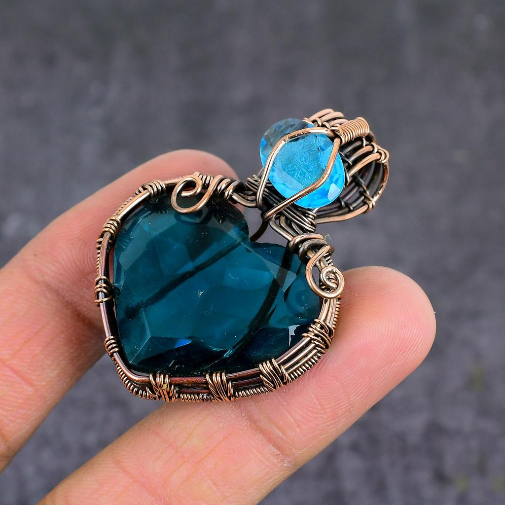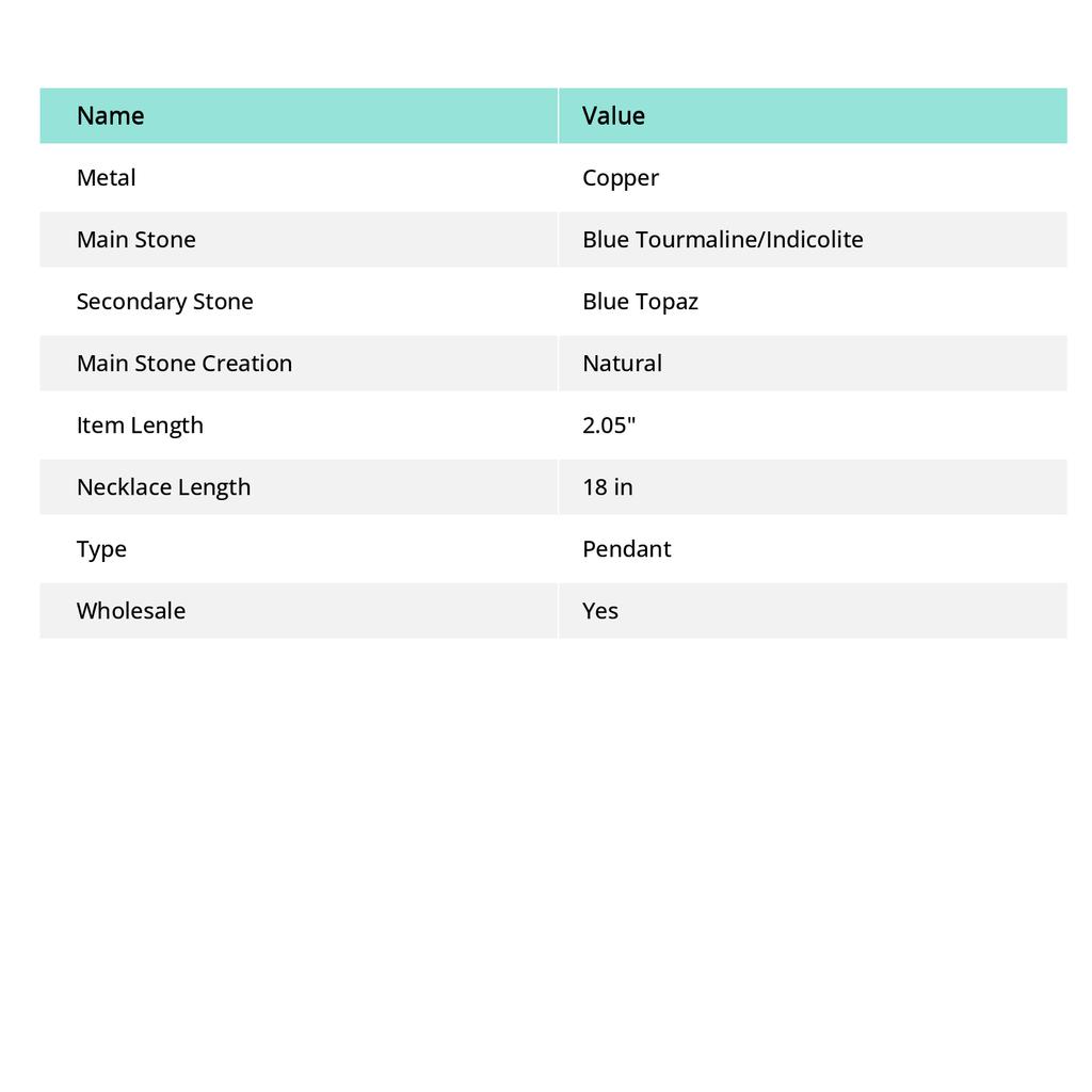 Natural Indicolite, Blue Topaz Handmade Copper Wire Wrap Pendant 2.05" H0c14