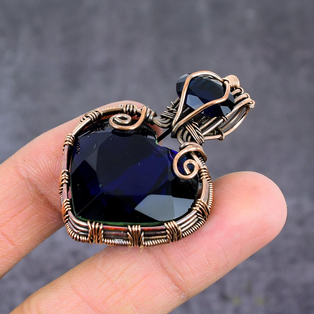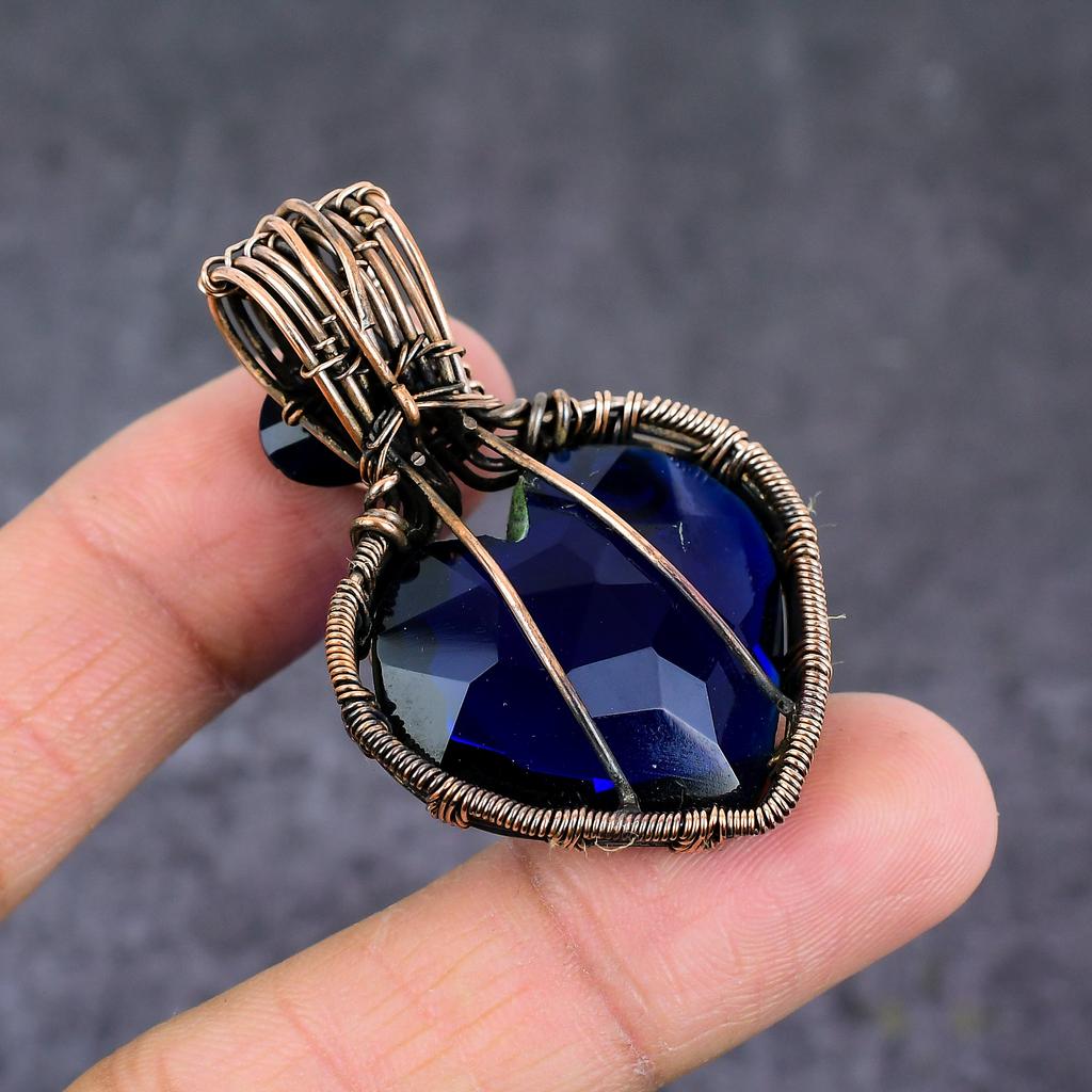 Натуральный Лондонский Голубой Топаз Драгоценный Камень Ручной Работы Медная Оплетка Кулон 2,05" p3s60