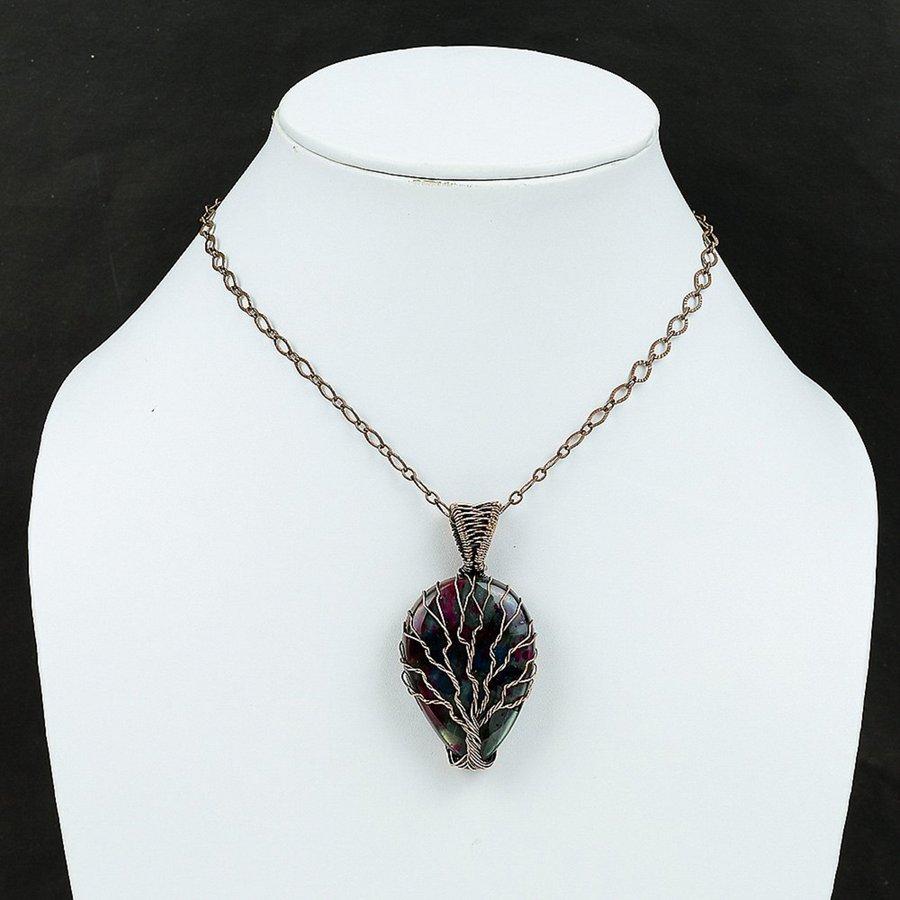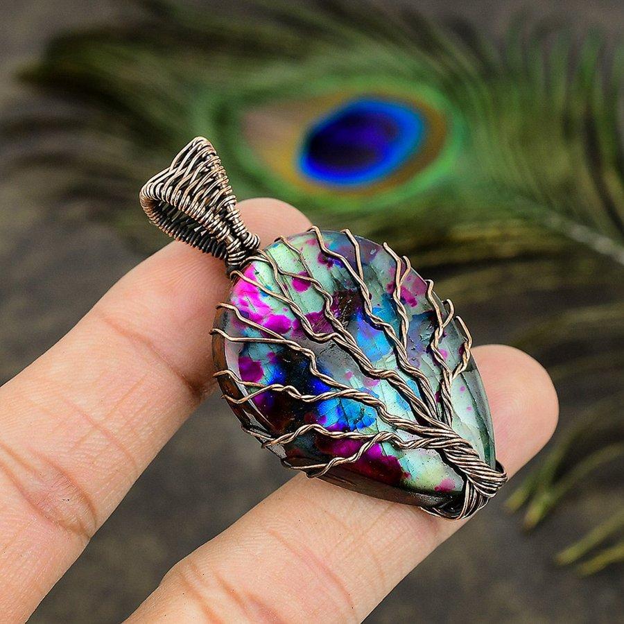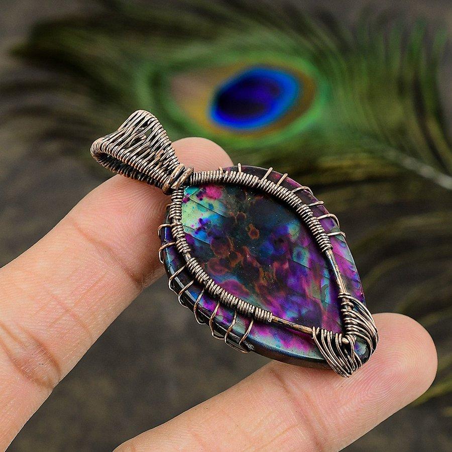 Натуральный камень лабрадорит, обмотка медной проволокой, подарочный кулон 2,40" P5b91