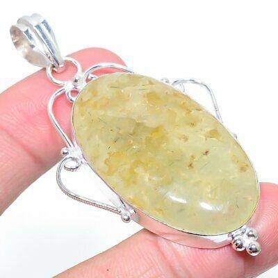 Natural Prehnite Gemstone Handmade 925 Sterling Silver Pendant 2.80" B0C94