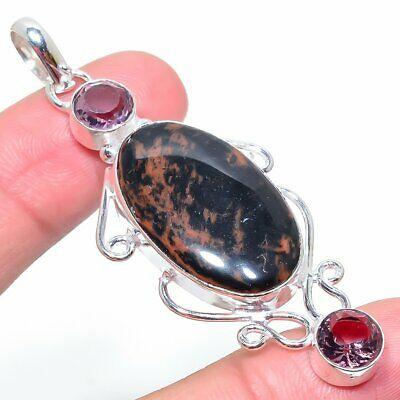 Натуральный махагоновый обсидиан, камень кунцит, подвеска из стерлингового серебра 925 пробы 2,64"