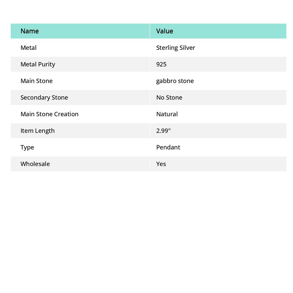 Натуральный камень габбро, драгоценный камень, ручная работа, подвеска из стерлингового серебра 925 пробы 2,99"