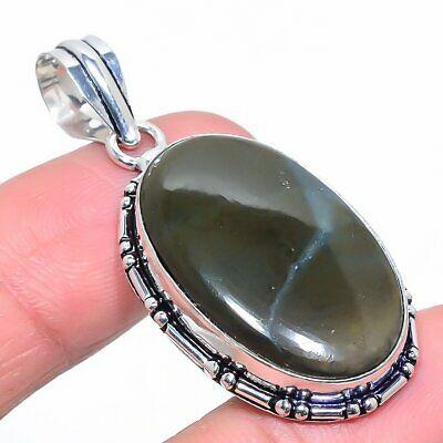 Натуральный самоцвет Яшма Трещиноватая Грязь Победы, серебро 925 пробы, кулон 1,89"