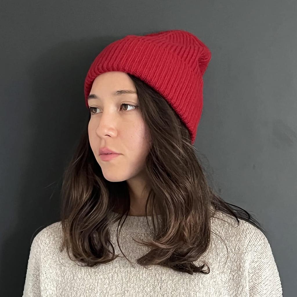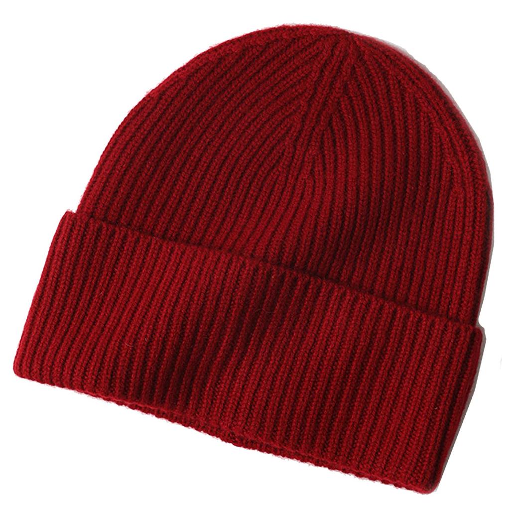 Кашемировая вязаная шапка-бини, универсальный размер [Soie Soirée] 100% женская/мужская (Красное вино)