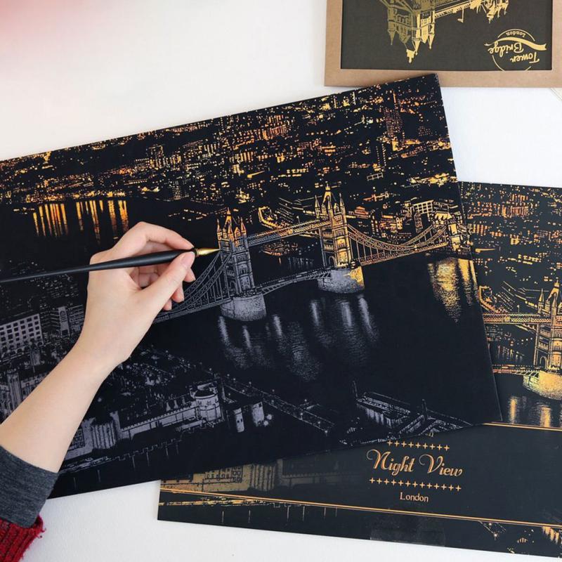 Яркий Город Декоративная Живопись Царапины Соскоб Живопись Рисунок Бумага Картины Украшение Дома — купить товар онлайн с бесплатной доставкой по всему миру!