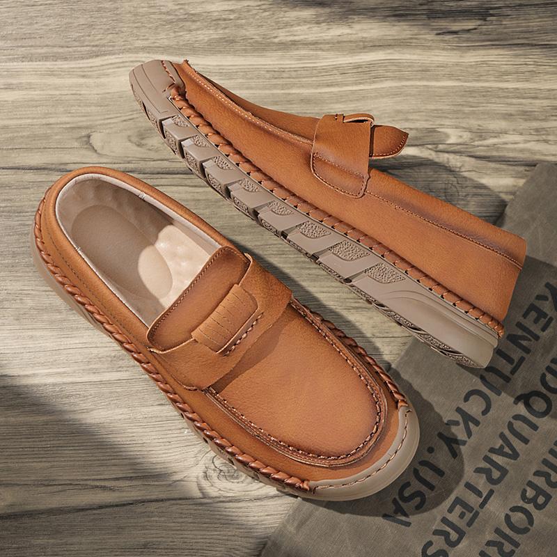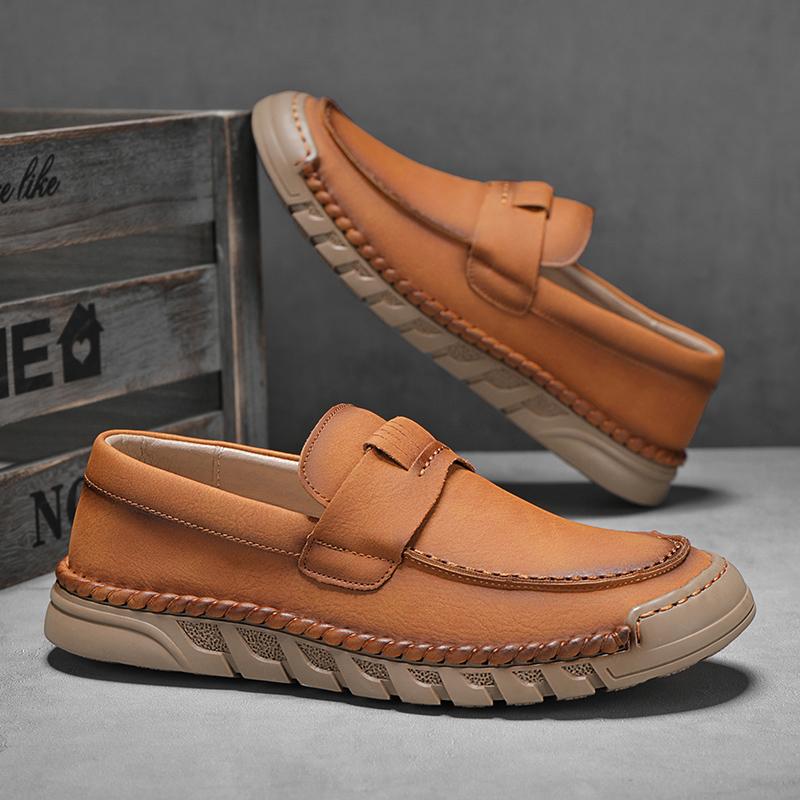 Мужская обувь из натуральной кожи, сшитые вручную мужские мокасины, прогулочные мокасины, дышащие туфли для вождения, мужская обувь для активного отдыха