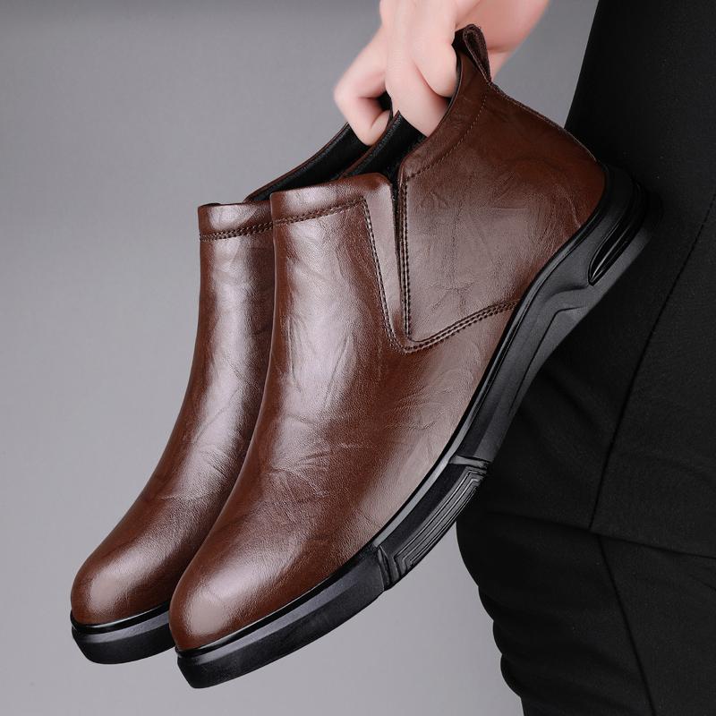 Классические мужские ботильоны из натуральной кожи, модные повседневные прогулочные туфли ручной работы, нескользящие туфли для вождения, теплые плюшевые меховые сапоги