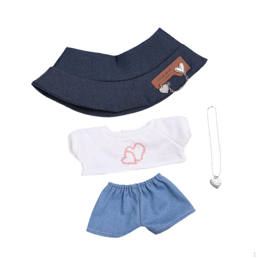 - 【Полный комплект одежды】: Этот плюшевый костюм для куклы включает в себя 1 шляпу, 1 топ, 1 брюки и 1 подвеску, предоставляя все необходимое, чтобы стильно нарядить вашу куклу ростом 38 см.