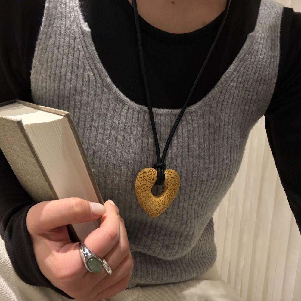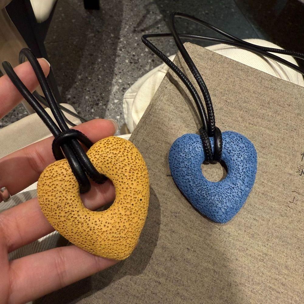 Elegant Hollow Stone Pendant PU Strap Personalized Sweater Chain Sweater Decor