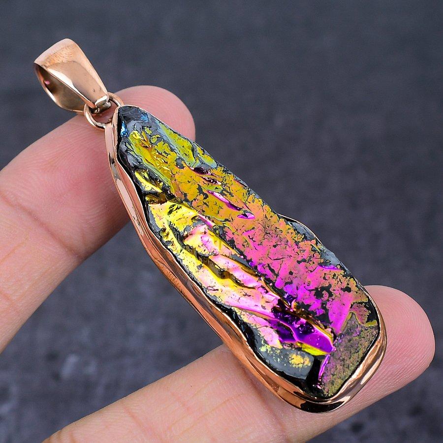 Подвеска из титана и меди «Аура павлина» ручной работы 2,76 дюйма