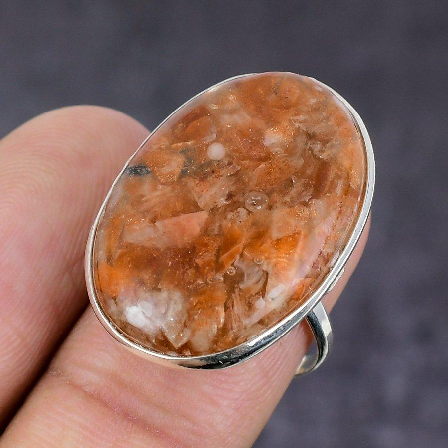 Гематит Ручной работы Ювелирное изделие из стерлингового серебра 925 пробы Кольцо Размер 7.5 q7a40