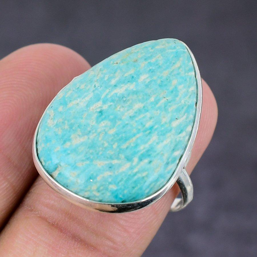 Амазонит Ручная работа Серебро 925 пробы Ювелирное кольцо Размер 7.5 d4P64