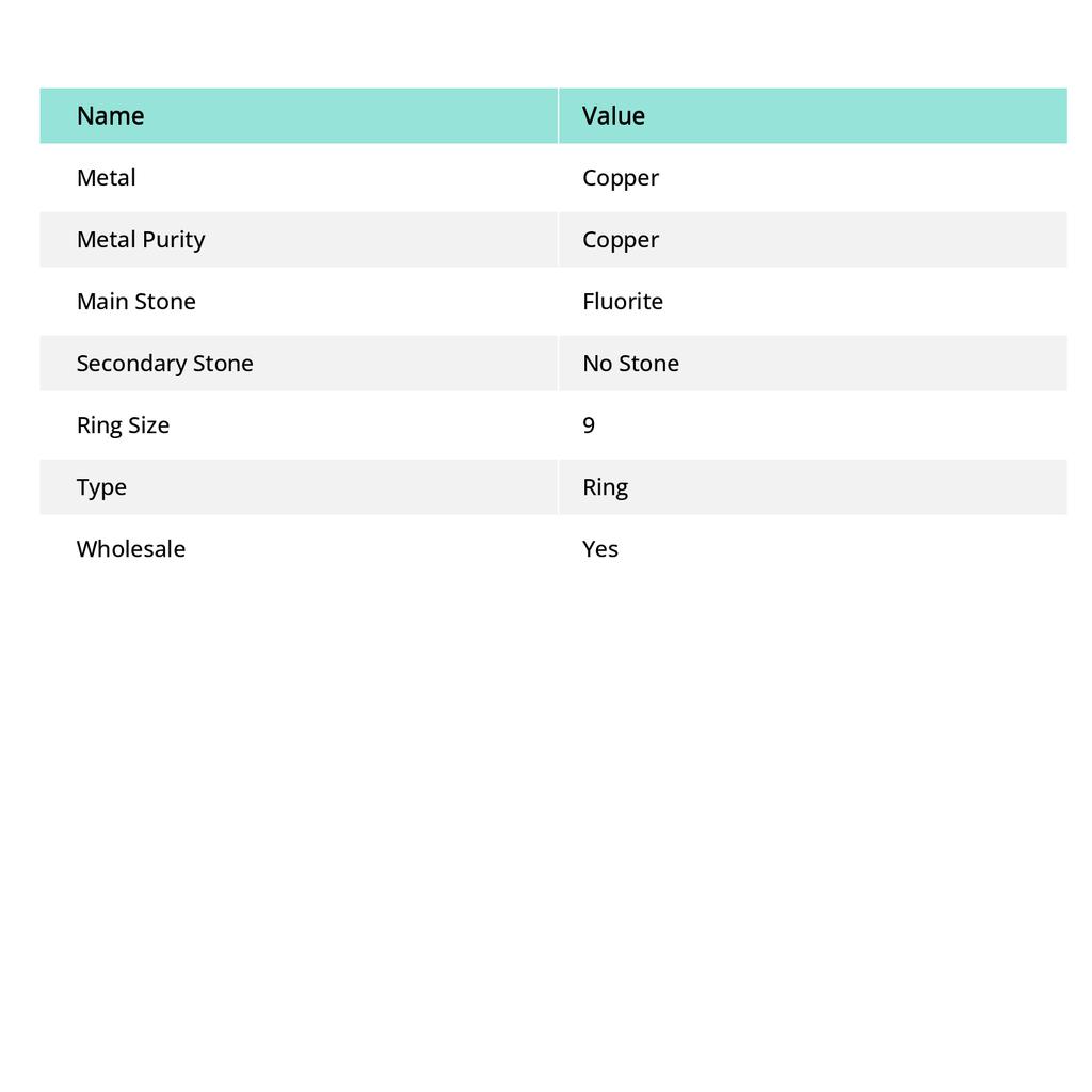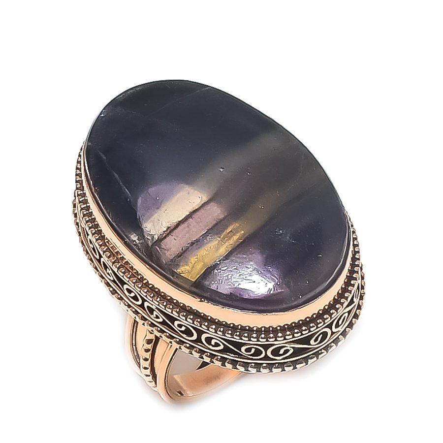 Флюорит Драгоценный камень Ручная работа Медная бижутерия Кольцо Размер 9 O8K16