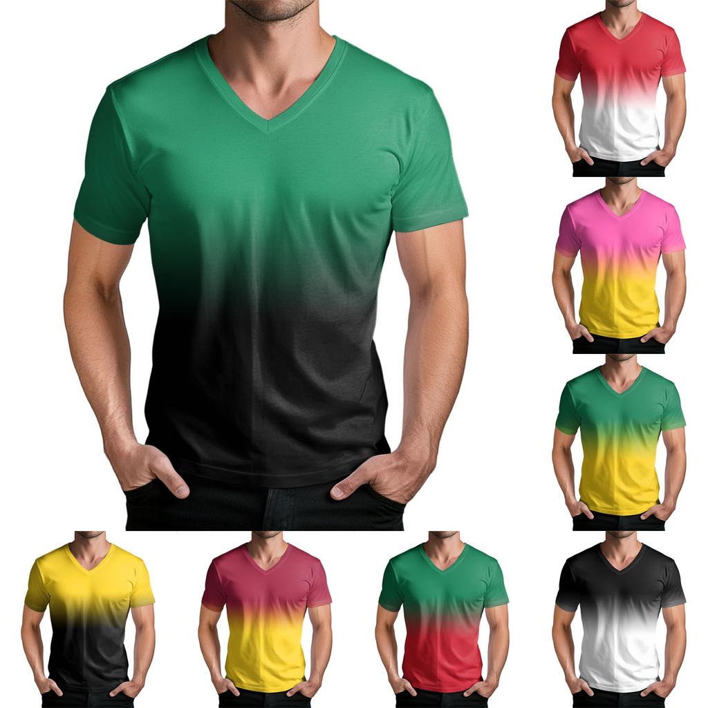Мужская модная футболка с коротким рукавом и V-образным вырезом