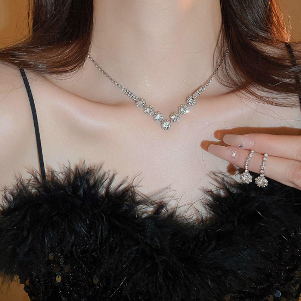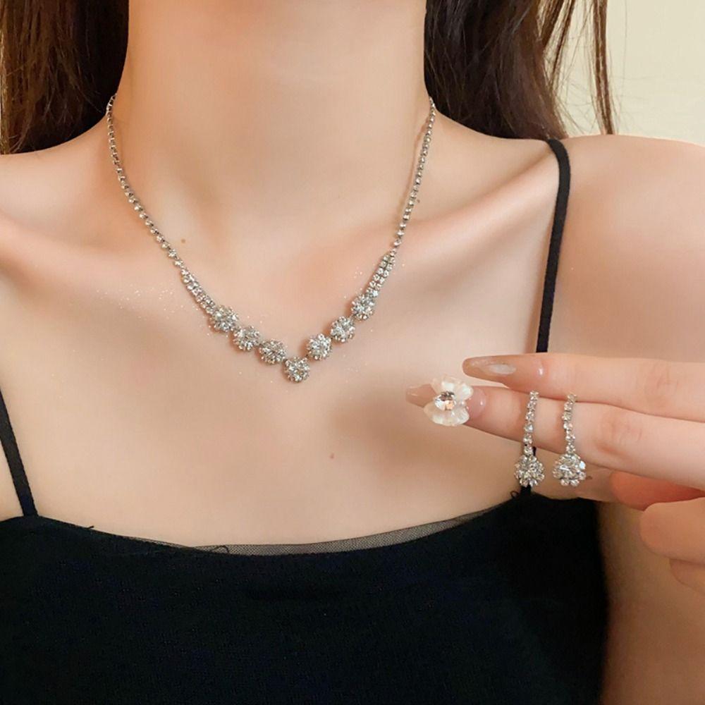 Серьги из кристаллов, сияющее ожерелье, свадебная вечеринка, комплект украшений со стразами для женщин