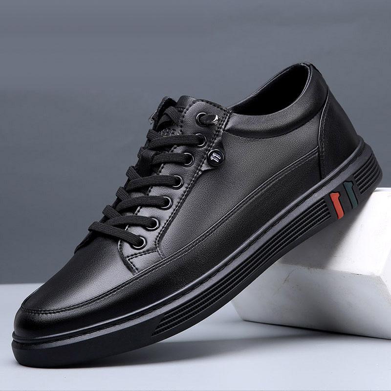 Новые туфли для мужчин из натуральной кожи, повседневная обувь, весна-осень, классные черные туфли для скейтбординга на плоской подошве, молодежные модные кроссовки без застежек