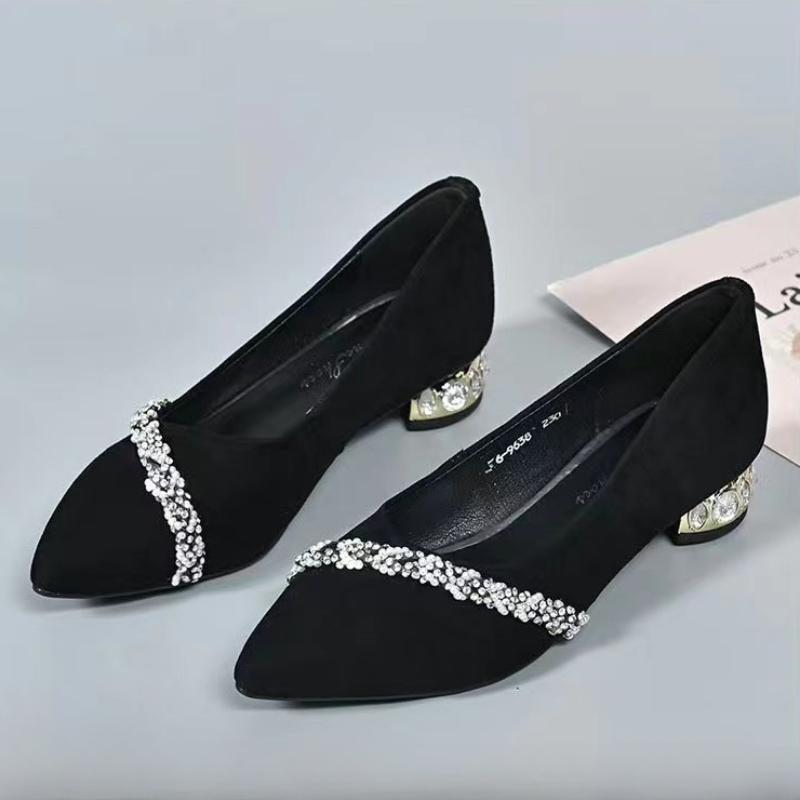 Новые женские туфли Летние туфли с бриллиантами Небольшие женские туфли на высоком каблуке Модные женские туфли на толстом каблуке с острым носком Tacones Para