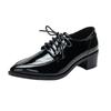 Осенние женские туфли на каблуках со шнуровкой, туфли дерби, роскошные черные лакированные женские рабочие туфли, модные туфли с острым носком на квадратном каблуке, тонкие туфли