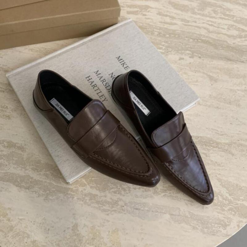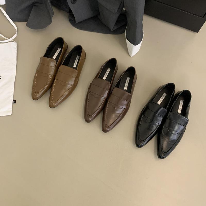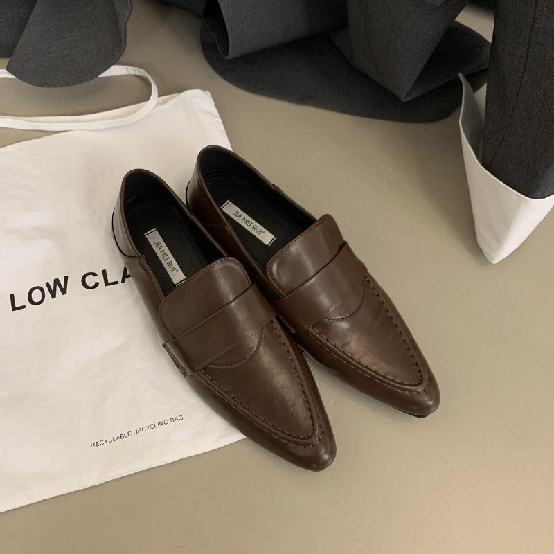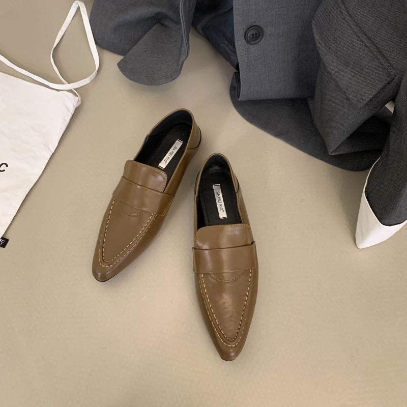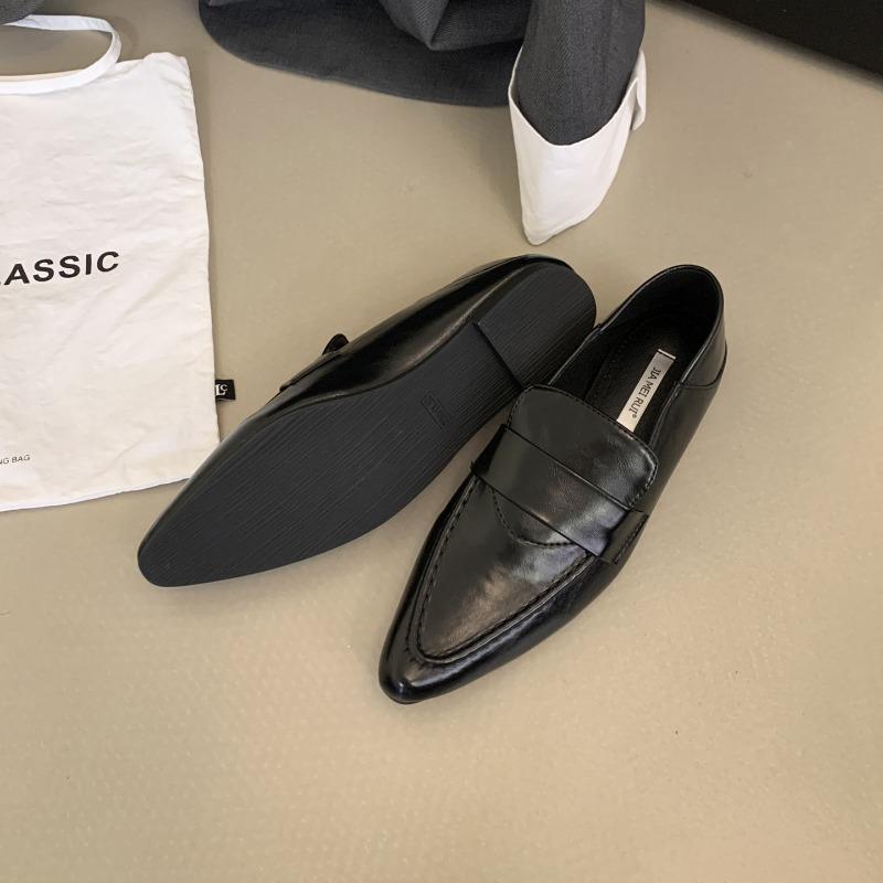 Остроносые женские туфли на плоской подошве с неглубокой отделкой, модные британские туфли для офиса и вечеринок, кожаные туфли для свадебной вечеринки, новинка 2024 года
