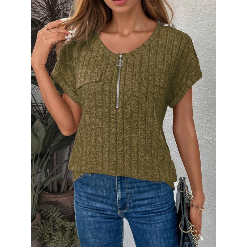 YYFS Женские модные повседневные летние весенние однотонные блузки и рубашки с v-образным вырезом и короткими рукавами с принтом