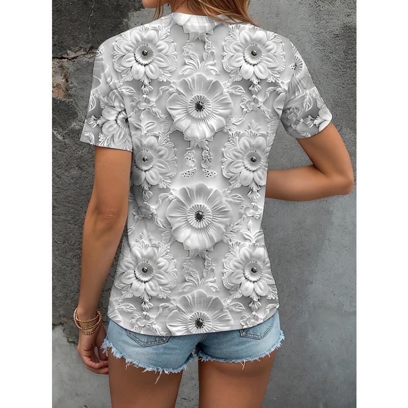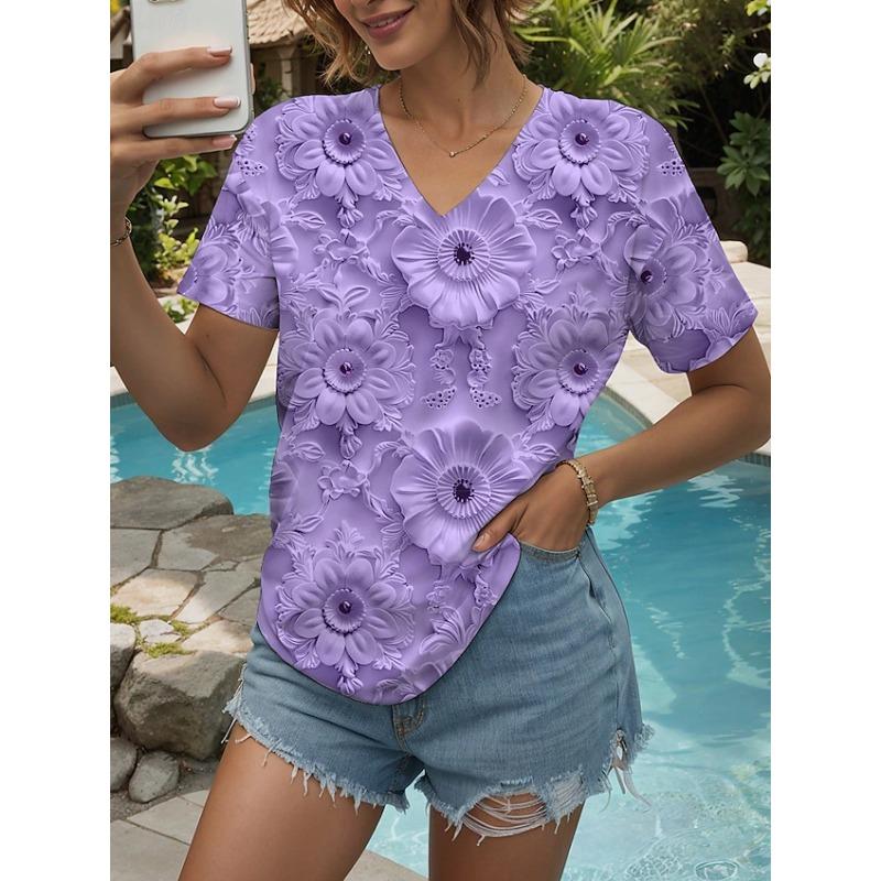 YYFS Женские модные повседневные летние весенние блузки и рубашки с цветочным узором и коротким рукавом с v-образным вырезом