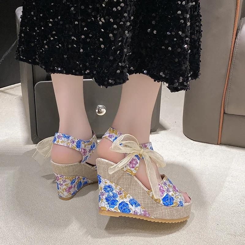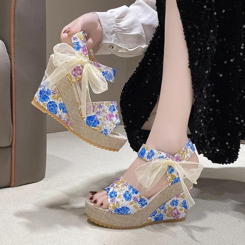 Женские сандалии на платформе, сандалии cuña cómodas с цветочным узором, формальные сандалии, новедады