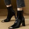 Новые зимние туфли на высоком каблуке 2025 года, сексуальные женские роскошные туфли с квадратным носком из металла, массивные ботинки челси до щиколотки, модные туфли-лодочки с молнией сзади в готическом стиле