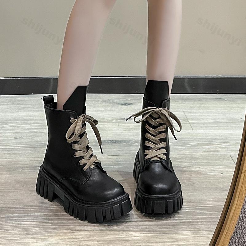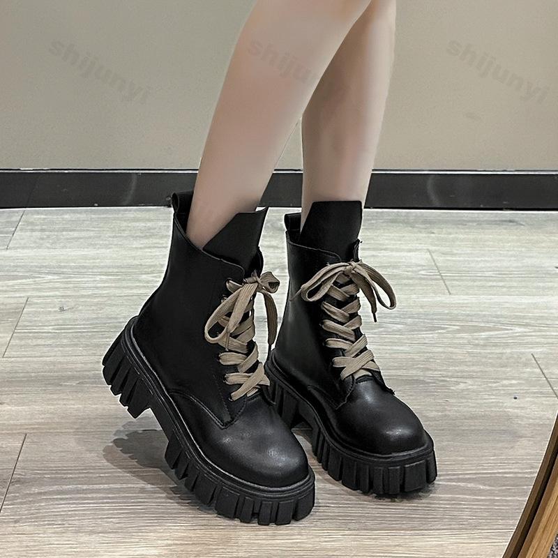 Осень-зима Новые женские ботильоны на водонепроницаемой платформе со шнуровкой на толстом каблуке Короткие сапоги Модные кожаные женские ботильоны на толстом каблуке