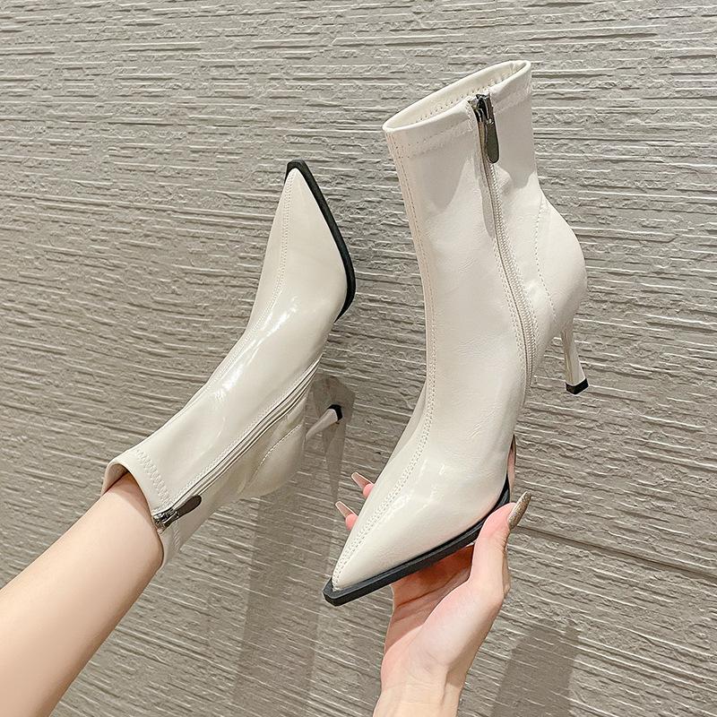 Роскошные женские ботильоны весна-осень, модные женские короткие ботильоны с острым носком, элегантные женские ботинки на тонком высоком каблуке