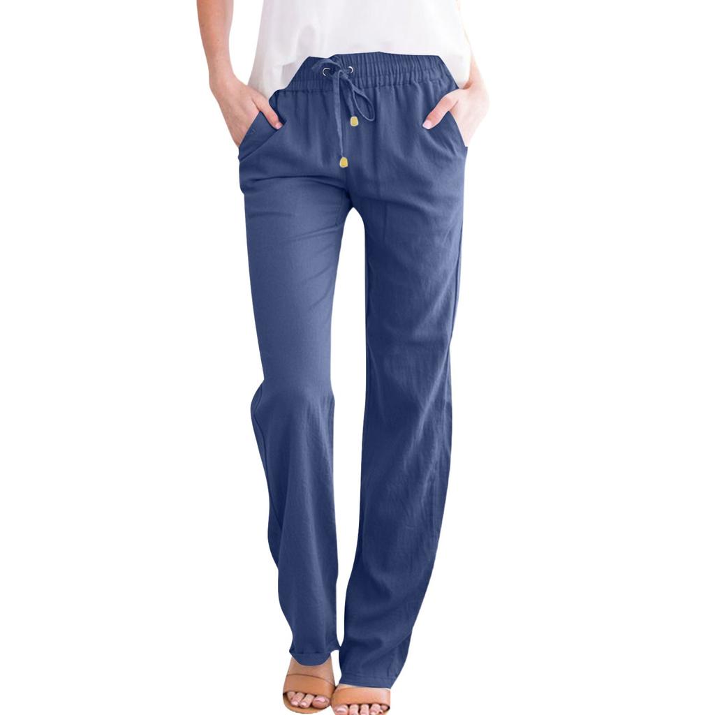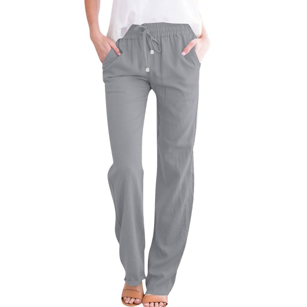 Женские повседневные хлопковые и льняные однотонные длинные прямые брюки с эластичной резинкой на талии