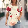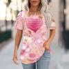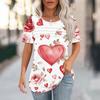 Женский топ с короткими рукавами и круглым вырезом, с принтом в виде сердечек ко Дню святого Валентина, плиссированный