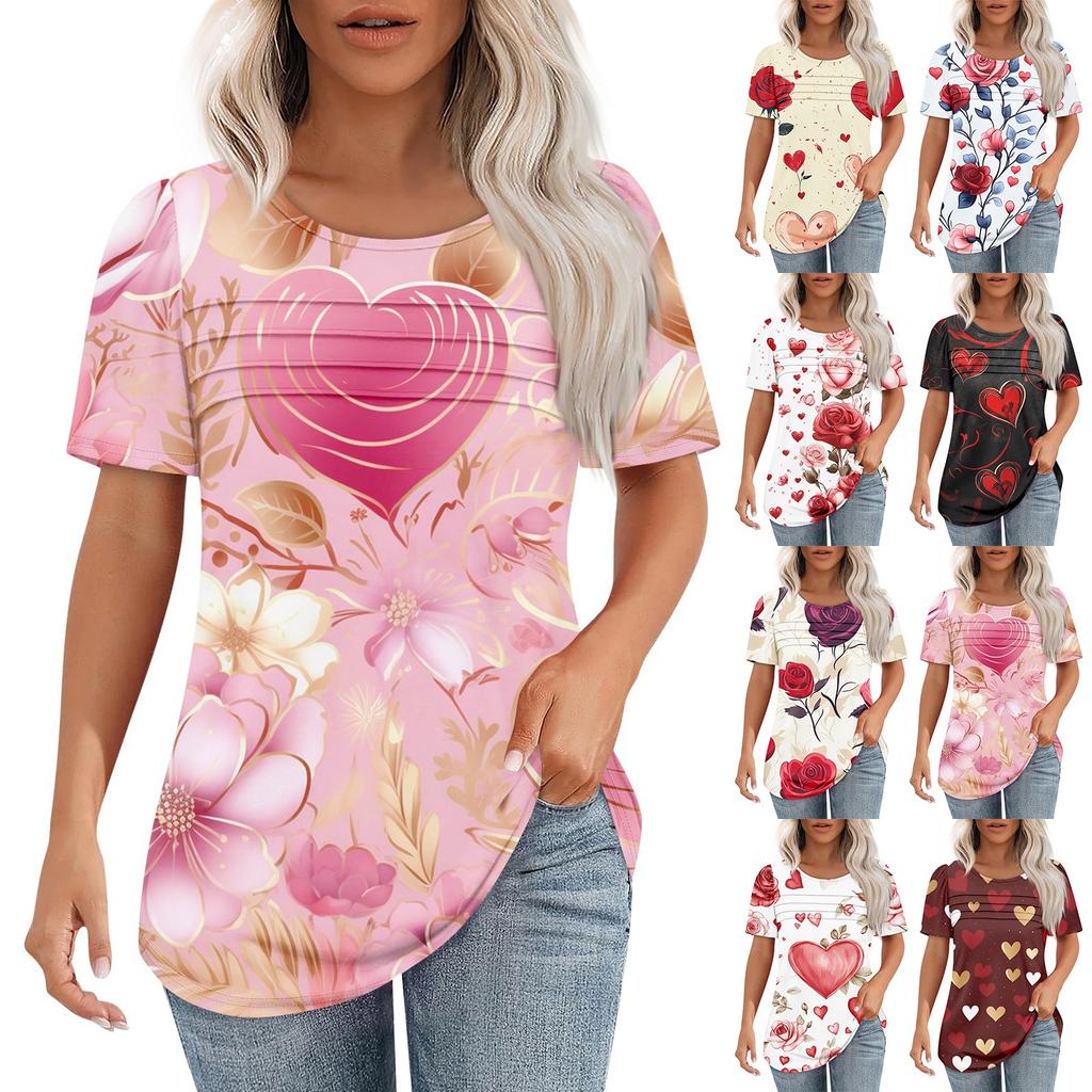 Женский топ с короткими рукавами и круглым вырезом, с принтом в виде сердечек ко Дню святого Валентина, плиссированный — купить товар онлайн с бесплатной доставкой до всему миру!