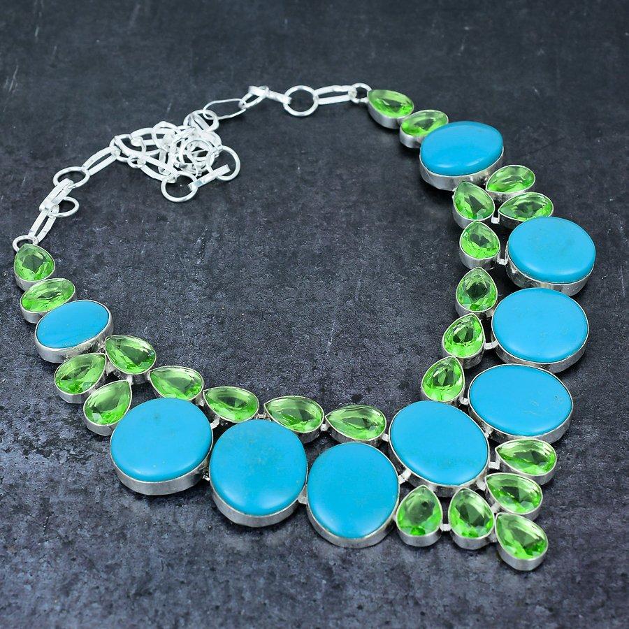 Аризонская бирюза, цаворит Ручная работа Ожерелье из стерлингового серебра 925 пробы 18" g5K07