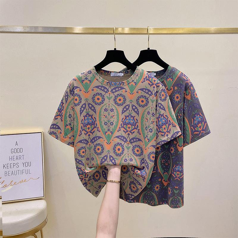 Футболка большого размера из хлопка с короткими рукавами, женская летняя одежда, корейская версия свободной и тонкой универсальной футболки с круглым вырезом и принтом для женщин — купить товар онлайн с бесплатной доставкой по всему миру!
