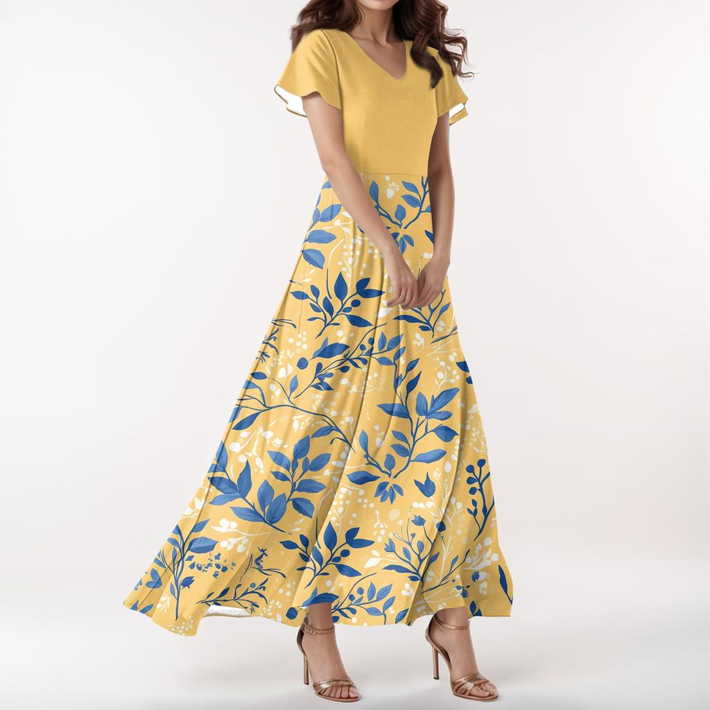 Женское повседневное платье с V-образным вырезом, коротким рукавом, высокой талией, принтом в стиле ретро с цветами и листьями. Характеристики: 1. Изготовлены из высококачественных тканей для ежедневного ношения.. 2. Модный дизайн ручной работы 3. Классический и универсальный, его можно легко сочетать с другой одеждой, пальто, свитерами и куртками весной и летом.. Весной и летом вы также можете смело носить его с различными украшениями, сандалиями, туфлями на высоком каблуке, пляжными шляпами и т. д.. Это обязательный предмет в вашем гардеробе. 4. Эта повседневная летняя длинная юбка украшена цветочным узором и разрезом посередине. Цветочный принт выглядит сексуально, но при этом не теряет своей сексуальности.. Это женское платье может изменить линию шеи и плеч.. Длинная юбка удлиняет ноги и добавляет неповторимый темперамент.. 5. Очень подходит для улицы, повседневных и развлекательных мероприятий. Информация о продукте: Сезон: Весна и лето Пол: Женский праздник: Повседневный/уличный материал: Тип узора полиэстер: Стиль печати: Повседневный, модный Длина рукава: Короткий рукав: Соответствует размеру Толщина: Стандартный метод стирки: Ручная стирка в холодной воде, сушка или развешивание. Включает в себя: 1 Женское платье