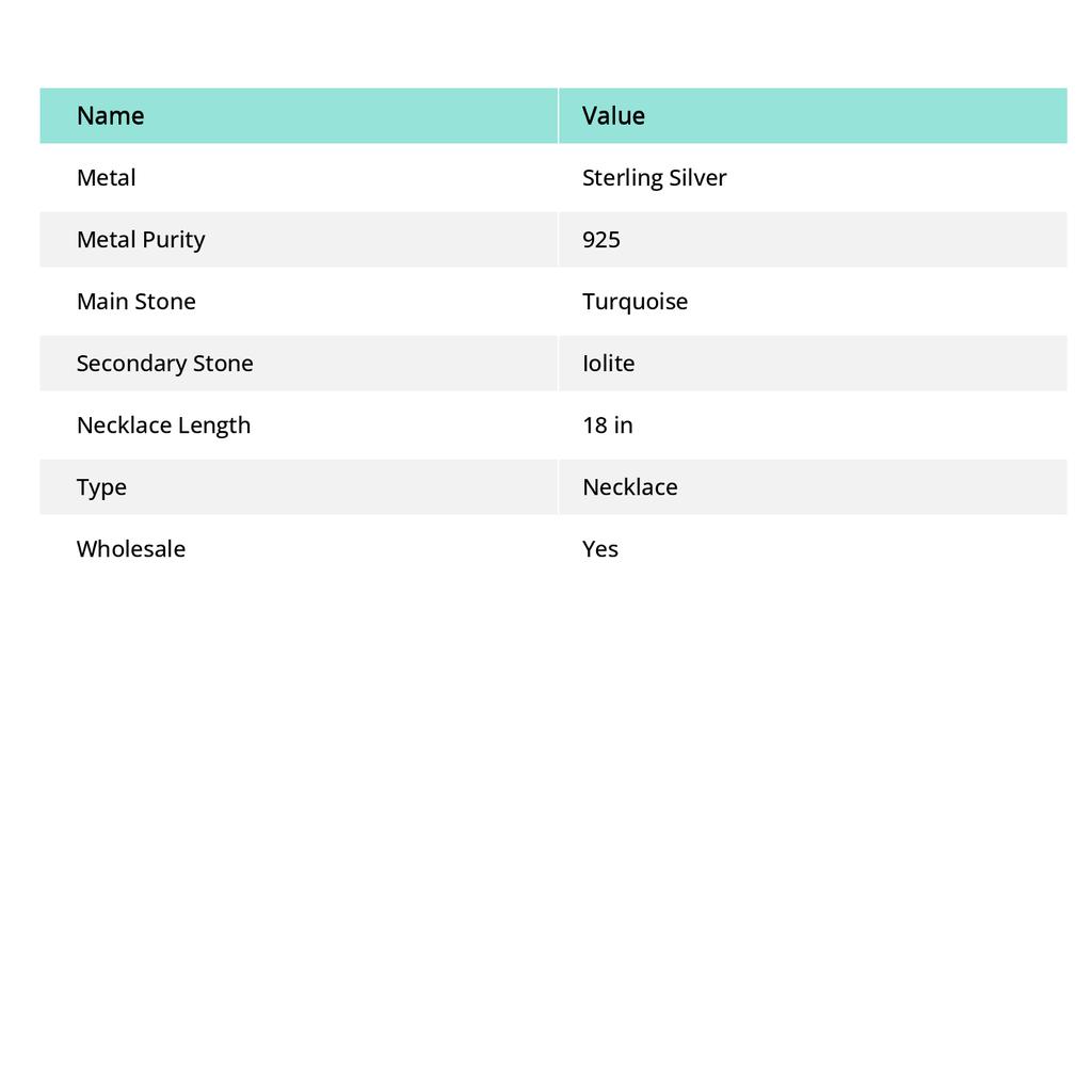 Ожерелье из серебра 925 пробы с тибетской бирюзой и иолитом 18 дюймов c9S87