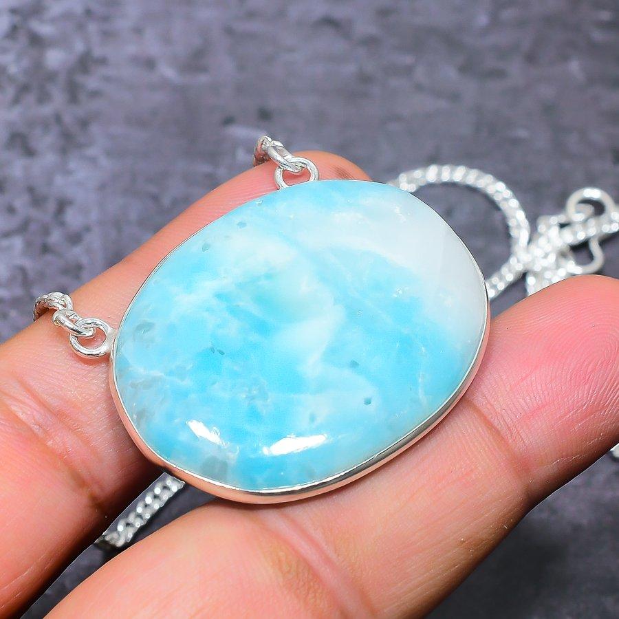 Ларимар Ручная работа Серебро 925 пробы Ювелирное изделие Ожерелье 18" a7A58