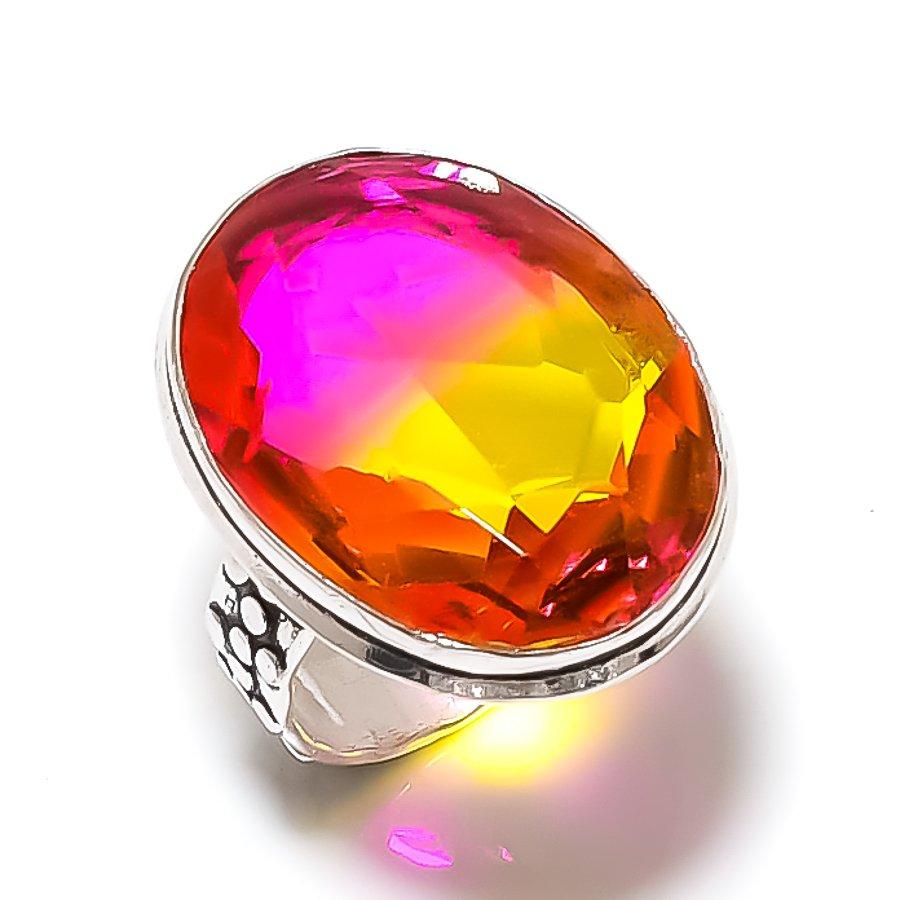 Двухцветный турмалин Ручная работа 925 стерлинговое серебро Ювелирное кольцо Размер 7 b2g86