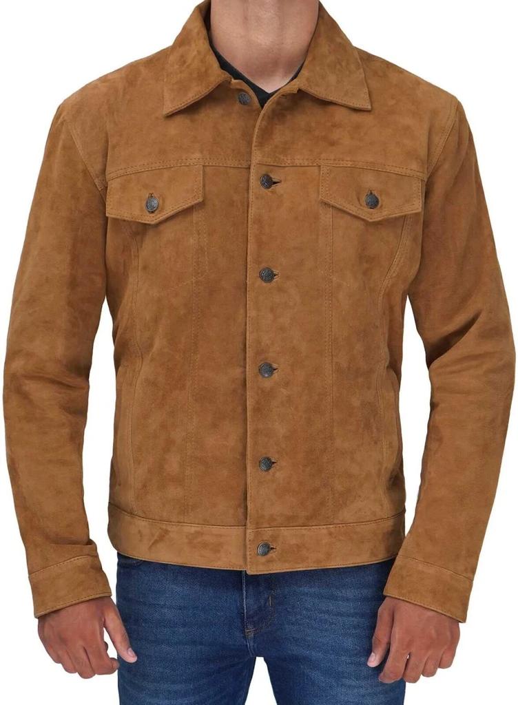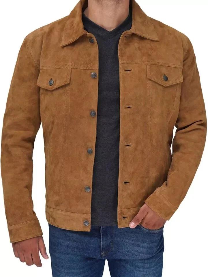 Натуральная кожа ягненка Вечеринка Повседневный Мягкая посадка Новый Мужская рубашка Замша Коричневый Ручная работа
