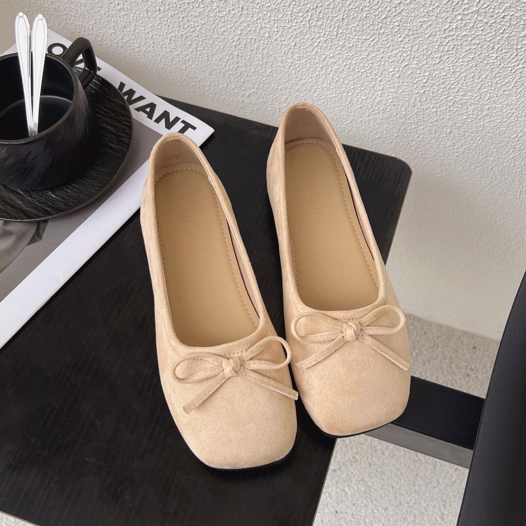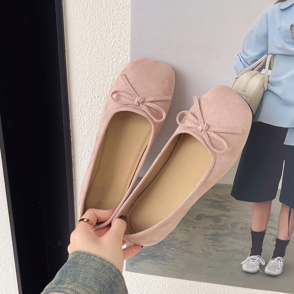 Французские балетки с квадратным носком и бантом для девочки 2025 года, новые туфли-лодочки на плоской подошве с одной педалью Mary Jane