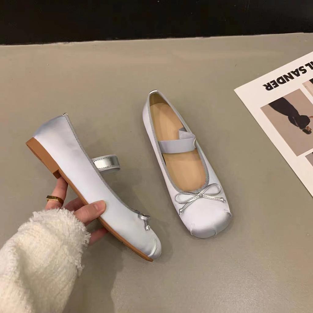 Балетки однотонные туфли Мэри Джейн туфли на плоской подошве розовые Балетная фея 2025 новая весна ретро сатин серебро