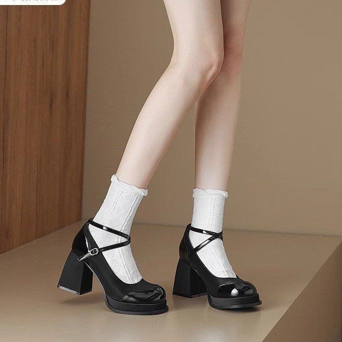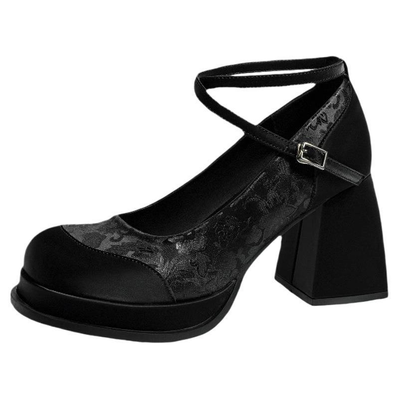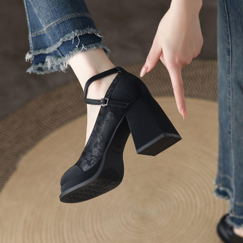 Женские туфли Мэри Джейн в национальном стиле, черные, на высоком толстом каблуке, универсальные, увеличивающие рост, с пряжкой из одного слова, новинка осени 2024 г.