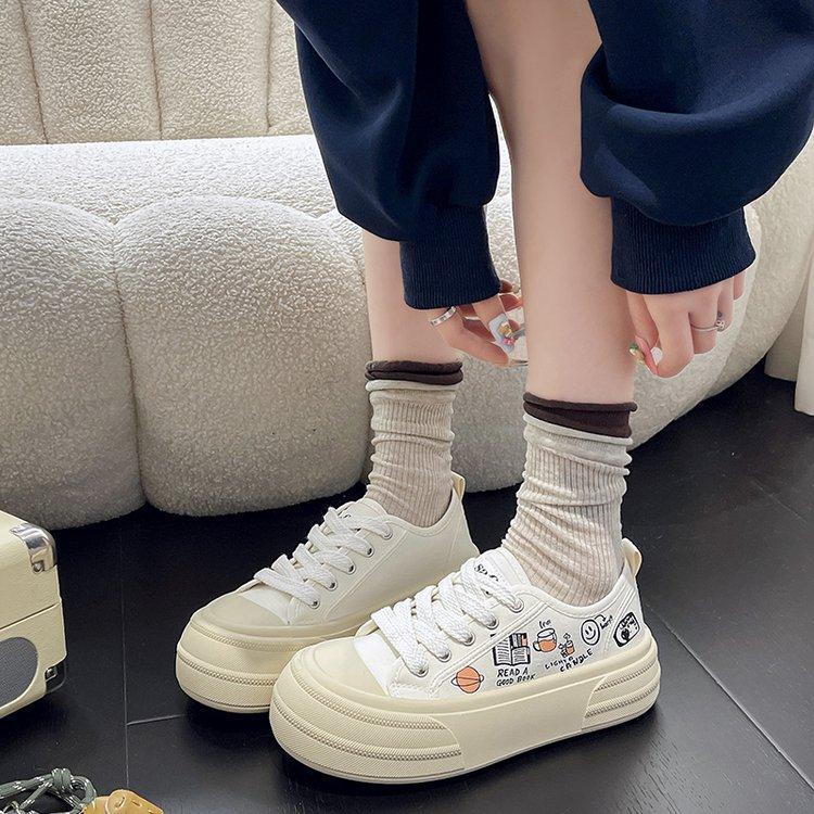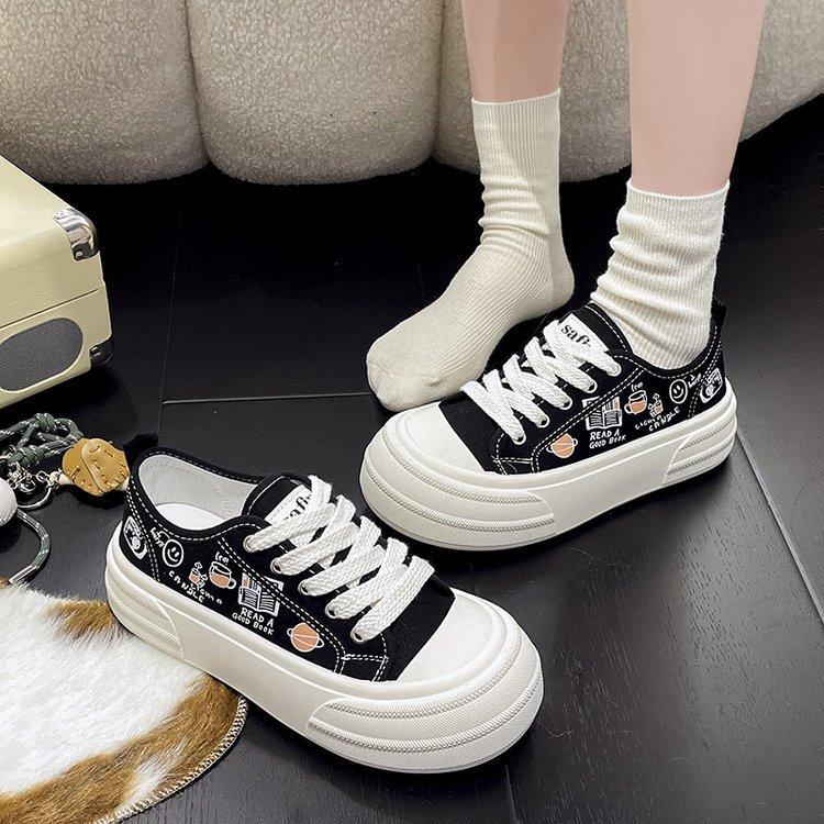 Парусиновые туфли женские 2024 новые осенние граффити печенье платформа тренд студенческие универсальные повседневные спортивные туфли для сноуборда женские
